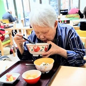 うどんを一口啜られた入居者様からは、「お出汁がしっかり効いていて、ごぼうの歯ごたえが最高ね!」と、嬉しいお声をいただきました✨